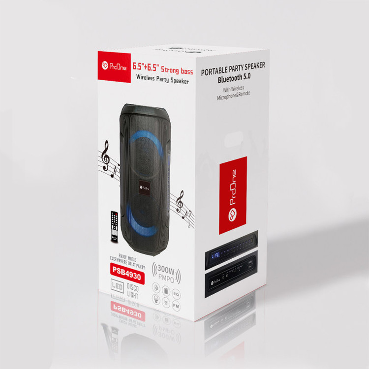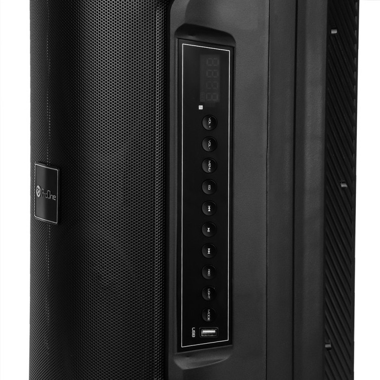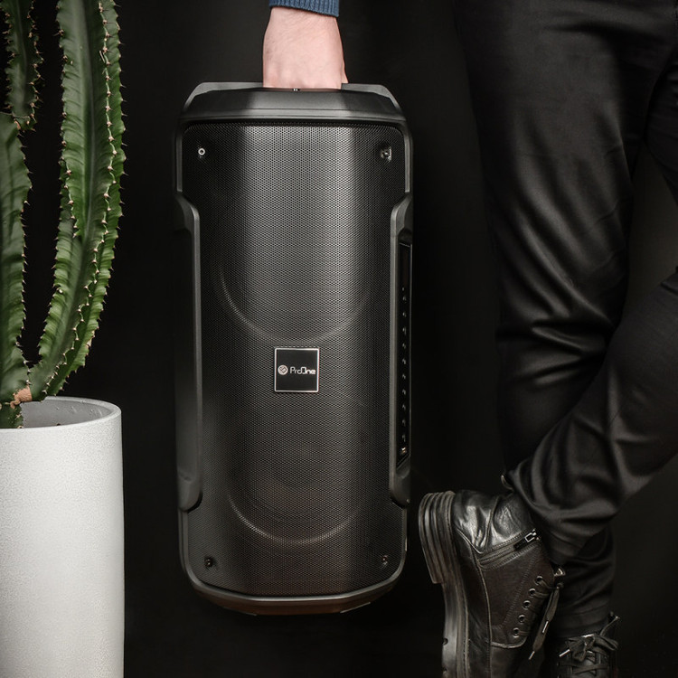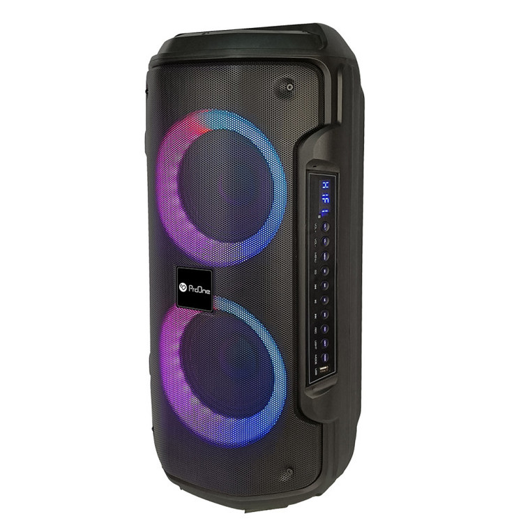 ابعاد ۲۸x۲۸x۶۱ سانتی متر دارای دو سابوفر ۶.۵ اینچ دارای کلید های مدیریت صدا